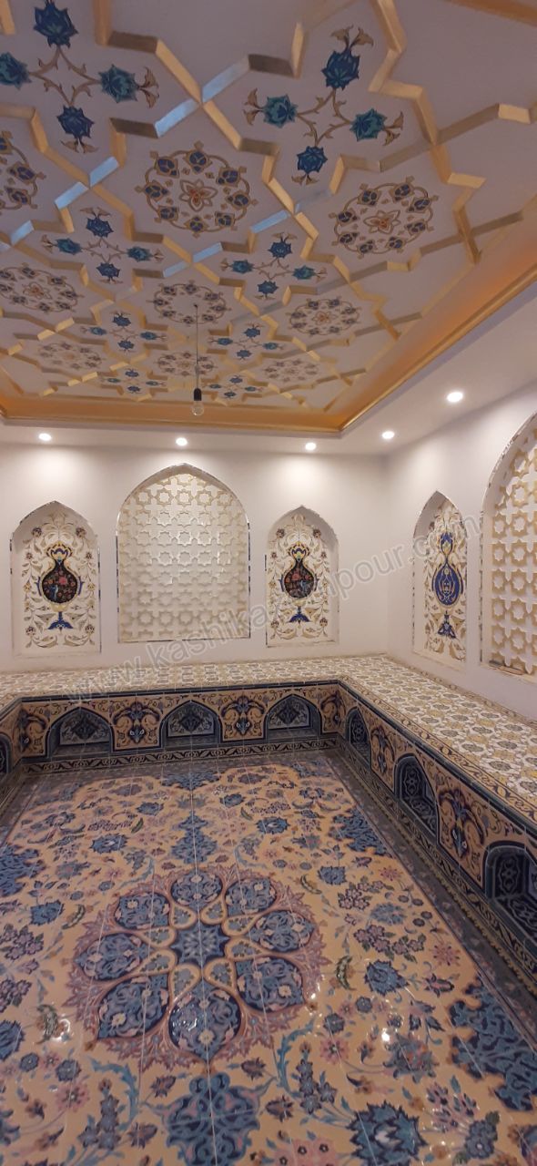 طراحی و اجراء سقف مشبک با پنل های سی ان سی و ورق طلا